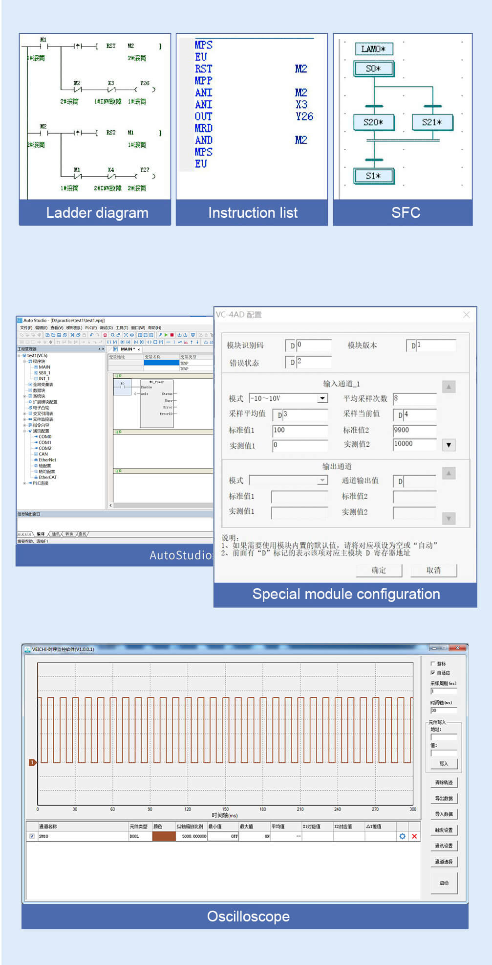 | CANopen | Built-in CAN communication port (The master station supports a maximum of 64 configurations, and the slave station supports a maximum of 8 PDOs) |